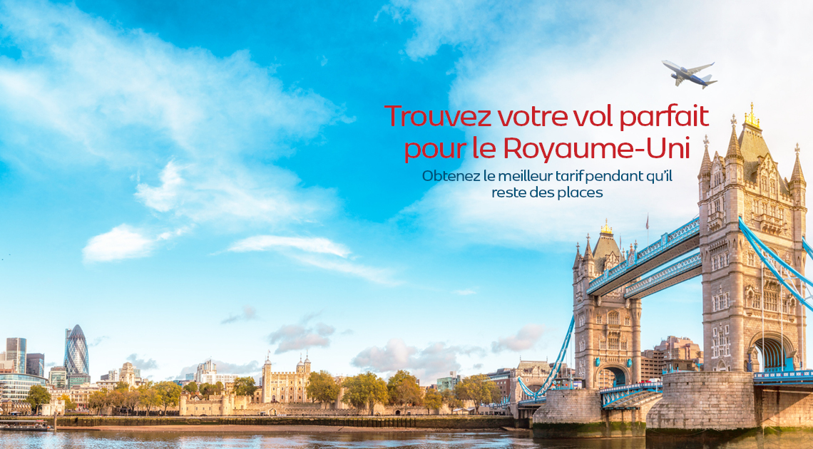 Vous trouverez facilement de superbes offres de voyage et des billets d’avion abordables vers Angleterre ici! Cherchez vos aubaines de vol vers Angleterre sur redtag.ca pour les vols nolisés ou les vols réguliers ainsi que les vols en classe affaires ou les vols en classe économique vers Angleterre. Trouvez ce qui vous convient dans la meilleure sélection de billets à prix réduits et de vols abordables pour Angleterre.