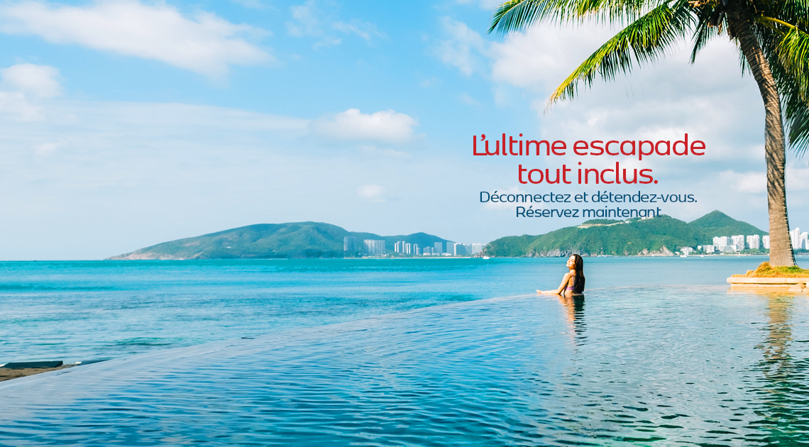 Les vacances tout inclus vous montreront à quoi ressemblent des vacances reposantes lorsque vous avez un accès complet aux services, aux restaurants, aux collations et aux boissons de votre centre de villégiature de qualité. Réservez dès aujourd'hui vos vacances tout inclus à bas prix et partez pour moins cher, c'est garanti !