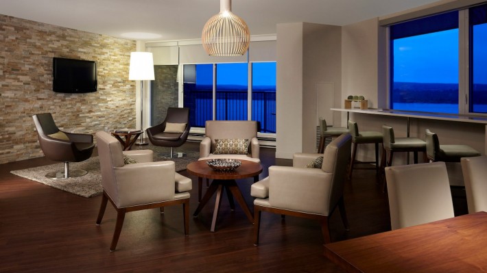 Situated on the banks of the St. John River, just minutes from the heart of downtown activity, Delta Hotels by Marriott Fredericton is the perfect blend of city life and waterfront resort. We are Atlantic Canada's only urban resort! Our Fredericton hotel's recent renovation in 2012 provides you with updated public spaces and guest rooms. Delta Hotels by Marriott Fredericton offers a contemporary home base from which you can explore the best sights and sounds of the city. We boast a picturesque location, an array of thoughtful in-room amenities, and hotel amenities and services that are perfect for business and leisure travel. Our Fredericton hotel's spacious rooms and suites are intelligently designed and they feature Wi-Fi access, deluxe bedding, and an ergonomic desk. In our hotel restaurant, URBAN GRILL, you will discover an oasis of culinary pleasures. Our signature spa is a perfect place to unwind and we offer 2 swimming pools on site. Begin planning your visit to Delta Hotels by Marriott Fredericton, a top choice among hotels in Fredericton NB.