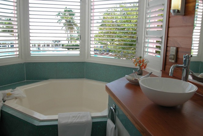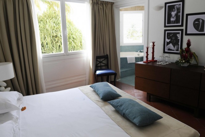 La Cocoteraie Saint-François Resort has 50 suites in single storied bungalow overlooking the beach, the gardens or the pool. Its consists of an air-conditioned bedroom and living room with mini bar, terrace, direct phone, television (satellite), safe, hairdryer and a marvellous bathroom equipped with Hexagonal shape raised bath and a shower room.
