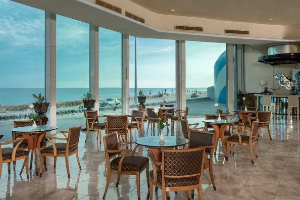 The Hotel Habana Riviera, located in front of Caribbean Sea, located in the heart of Havana City is. It has 352 rooms with views of the ocean and the city, 16 Junior Suite, 1 Suite, 2 handicap rooms. Stylishly modernist, the building's 50s look (and feel), Grand lobby, with original structure, furnishings and décor very well preserved. Spacious lobby bar set next to a row of large glass panels that place one almost literally next to the water, and the Mirador de la Habana restaurant with nice views of the littoral and city. Prestigious symbol of Havana City, its beauty, its Caribbean captivation, its cozy environment makes it into the most wanted hotel by the visitors. Services: Outdoor Pool, 1 Restaurant, Lobby Bar, Bar-Cafeteria by the Pool, Buffet breakfast included. Rooms: A/C, Minibar, TV, Safe. 3 Elevators.