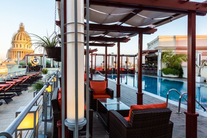 Hotel Saratoga best pool rooftop view in Havana, 5 star Luxury, 96 rooms and WIFI free. Other services Cradles Direct phone line Satellite TV FREE WIFI Air conditioning Safe in-room Minibar Room service Laundry and ironing 3 Bars 2 Restaurants Dinners and feasts service Buffet and A la Carte Breakfast Parking lot Luggage room 24 hours Reception Service Concierge Tour desk Car rental Business center Spa (Jacuzzi, masaje and steam bath) 2 Meeting rooms Baby sitter service Swimming pool