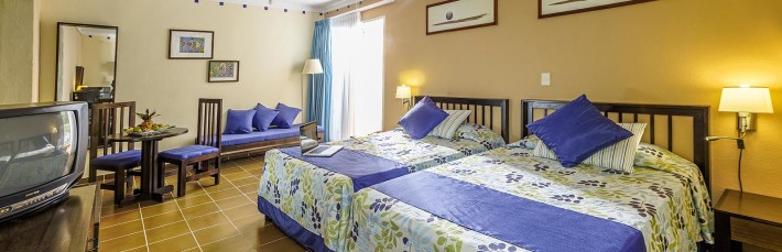 The Hotel Be Live Turquesa is located on the seafront of the marvelous Varadero beach in Varadero, Cuba. It is an all-inclusive beach hotel, surrounded by a coconut plantation and exuberant tropical vegetation; the beautiful 4-star Turquesa Hotel has some of the most extravagantly landscaped tropical gardens in Varadero. The colourful, large rooms are in a modern, two-storey building with spacious bathrooms. Guests at this beach resort will be able to relax and enjoy their holidays, sunbathing on the beach during the day, and experiencing the lively Caribbean rhythms and dances during the night.
