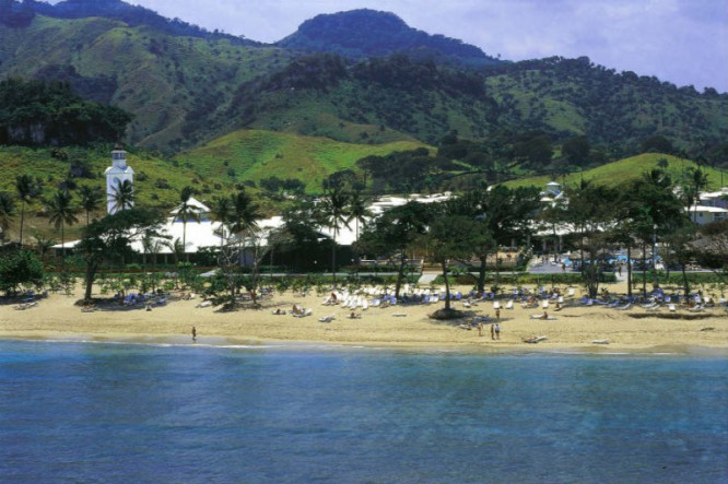 Standard room amenities include private bath, telephone, air conditioning, ceiling fan, color TV via satellite, safe deposit box, stocked mini-bar, liquor dispenser and balcony or terrace. Your all-inclusive privileges include all meals and beverages featuring an exquisite variety of international and local specialties as well as domestic alcoholic beverages, nightly live entertainment ranging from spectacular shows to live music and dancing all night plus daily poolside activities for adults and children coordinated by our friendly entertainment staff.