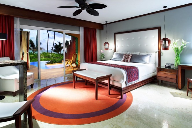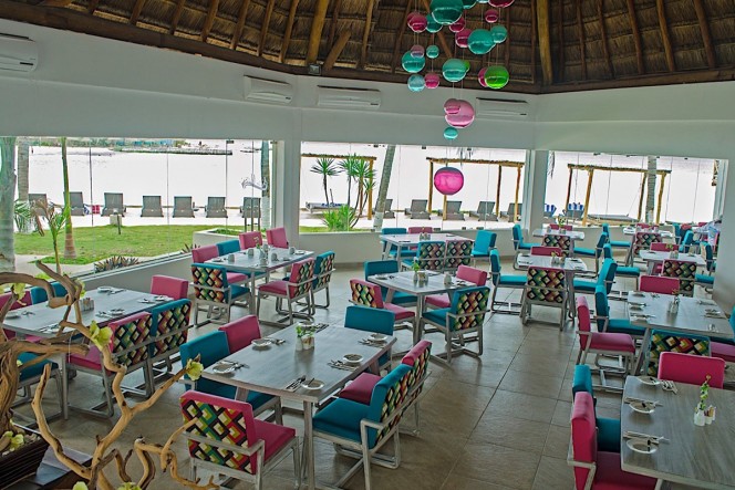 The Avalon Reef club Isla Mujeres all inclusive hotel is situated on a private, tiny islet connected to the mainland of Isla Mujeres by a lengthy pier, allowing for the almost 360-degree panorama. The surrounding sea is truly pristine, with vivid shades of blues and greens influenced by the reef. Guests can literally wade through the shallow, crystal clear water to the sugar-white sandbars. Rock formations along a small portion of the shoreline have created an amazing, perfectly-formed ocean swimming pool. A walkway links the natural phenomenon to Avalon Reef Clubs beach for guests to enjoy on fair-weather days.