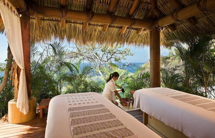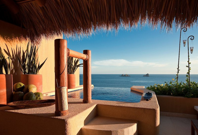 Cala de Mar is a Mexico luxury resort set inside a rock cliff overlooking the Pacific Ocean. The property features suites, private plunge pools, a world-class spa, restaurants, tequila bar, beach wedding locations, and more.