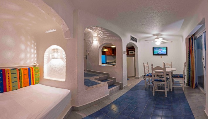 The Villas have 1 and 2 bedrooms, a living room, refrigerator and private terrace with a wonderful view to their magnificent gardens and the beautiful beach. For anyone interested in water sports, the conditions and services at Club Mavea make it the ideal beach. Come to the beach club or pool and practice the sport. You can consult the activities program at the information tower. Water aerobics, Water basketball, Boogie Board, Diving lessons, Snorkel lessons, Kayaks, Boat rides, Water Volleyball, Water-polo and Windsurfing.