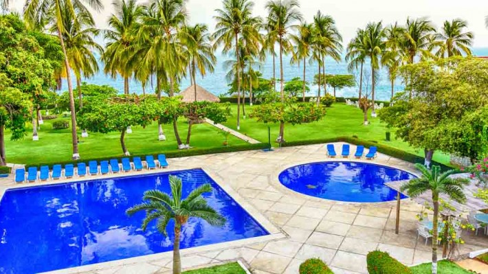 Posada Real Puerto Escondido beach hotel in Oaxaca, Mexico, is an oasis of tropical tranquility in the quaint fishing village of Puerto Escondido. Guests at Posada Real Puerto Escondido hotel enjoy private beach club access, swimming pools, exotic gardens, two full-service restaurants, and air-conditioned accommodations with complimentary Internet access and garden or ocean views.