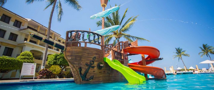 Welcome to Samba Vallarta by Pueblo Bonito located in Riviera Nayarit (just outside of Puerto Vallarta) in Mexico. The Resort is located on Mexico`s Pacific Coast twenty minutes away from Puerto Vallarta, the Samba Vallarta has 180 rooms and its meticulously landscaped grounds separate the spectacular free form swimming pool from the four-story building that houses the hotels guestrooms. One-bedroom suites are excellent for families; the separate living area has a pull out sofa, fridge and microwave, and sleeps up to six in a room. The separate bedroom area has either one king, or two double beds. The bathroom is divided into separate shower, vanity, and toilet areas.