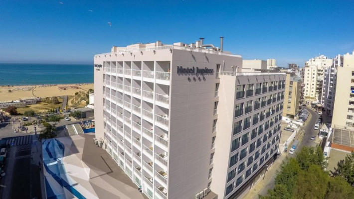 The Jupiter Algarve Hotel, formerly know as Hotel Jupiter is a modern ocean themed 4 star beach front hotel located at Praia da Rocha on the Algarve. Featuring 183 rooms, with sea or land views. All of the guest rooms feature free Wi-Fi, LCD TV, air conditioning, double or twin beds, minibar, and ability to accommodate families with children. Hotel facilities include a swimming pool (covered and heated in winter), restaurant, bar, spa, gym, meeting rooms, garage and musical entertainment. Start the day with a full breakfast buffet served in the restaurant and discover the best the region has to offer. Take advantage of the beach only a short distance on foot, and many other activities available such as scuba diving on the reef Ocean Revival, boating, experiences at the Algarve International Motor Park and visits to amusement parks such as Zoomarine, Slide & Splash or the Museum of Portimao. Back at the hotel we suggest a visit to the SPA circuit or a relaxing massage, or stay active at our Fitness Center. Open daily for lunch and dinner, the Jupiter restaurant serves a variety of dishes of Portuguese and international cuisine served "a la carte" or buffet also with Half and Full boards meal plans available. The hotel also offers flexible meetings and events spaces with capacities up to 300 guests, computers with internet access, a car parking garage, airport transfers, tours, bicycle rentals all available at the 24 hours reception desk. A great location, only 2 steps from the beach, the marina, restaurants, bars, shops, casino, and the excitement of the famous summer beach parties ... Make this hotel the right choice for those seeking a stay full of good memories.
