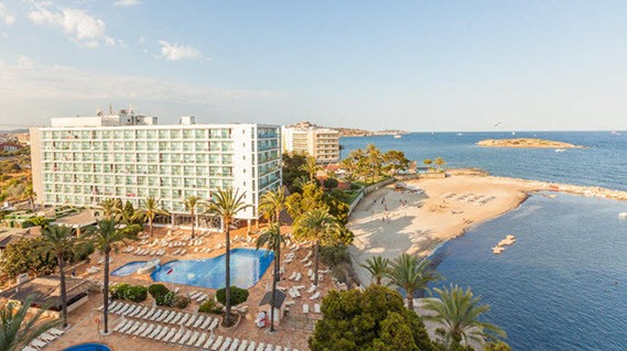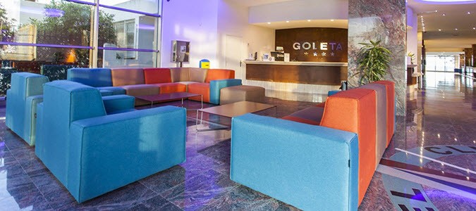 Between sky and sea... Situated in the Playa d'en Bossa area, one of the most popular tourist resorts on the island, you will love the Sirenis Hotel Goleta & Spa The hotel, together with the Sirenis Hotel Tres Carabelas & Spa, forms a complex where you will be able to enjoy fantastic frontal views of the Mediterranean from the balconies. You will also be able to discover the beauty of Dalt Vila, the old town of Ibiza, declared world heritage by the UNESCO, and enjoy all the activities and services in the area, which range from sports to beach clubs and popular shops. The comfort, relaxation and fun in this complex will guarantee an unforgettable stay. The buffet restaurant offers a wide range of Spanish and international dishes cooked on the spot by the chefs using quality ingredients. The Sirenis Hotel Goleta & Spa offers a select, international atmosphere and adjoining is the Sirenis VITAL Spa, offering a space for relaxation, pampering and massages. Also, if you enjoy working out during your stay, you will be able to visit the hotel gym and sports area. The four meeting rooms situated in the hotel are equipped with all the necessary technology for meetings and conferences.