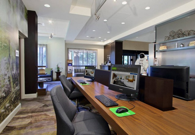 The new state-of-the-art lobby at Courtyard by Marriott Cocoa Beach-Cape Canaveral provides greater flexibility and choices for the guests. This hotel features the new lobby with inviting, flexible spaces to work or relax in, free Wi-Fi throughout and easy access to the latest news, weather and airport conditions via the GoBoard™. The highlight of the new lobby experience is The Bistro - Eat. Drink. Connect.™ which provides guests with healthy food and Starbucks in the morning as well as lunch and evening dinner service with cocktails. Located on famous Cocoa Beach, 200 yards from the Atlantic Ocean and just minutes from Port Canaveral Cruises, Kennedy Space Center, Historic Cocoa Village, and Orlando's Attractions. It offers a well equipped fitness center, mineral pool and whirlpool. A 24-hour business center and boarding pass printing service is also available. Your stay at Courtyard Cocoa Beach/Cape Canaveral is sure to be more comfortable, more productive and more enjoyable than ever before!