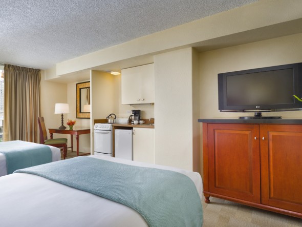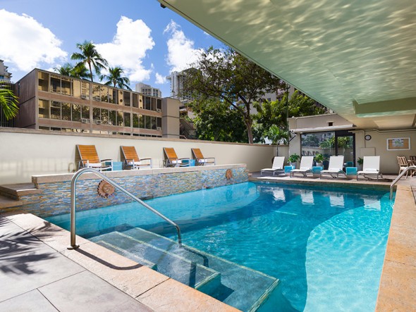 Aqua Ohia Waikiki features hotel rooms, studios, and suites - all with kitchen facilities including 4-burner stove mini-refrigerators. Hotel amenities include an outdoor swimming pool with sundeck and surf racks for added convenience. The hotel also offers on-site concierge services. A daily hospitality fee will be added to the daily room rate. An amenity fee includes: Blu-ray/DVD movies and PlayStation(R) 3 games, Daily local newspaper in lobby, In-room coffee packets replenished daily, In-room safe, Macy's shopping discount, Waikiki to Ala Moana shuttle service, WiFi access, Rice cooker (available upon request), and a weekly manager's reception help every Monday from 3:30 PM - 5:30 PM featuring appetizers by Lava Tube Waikiki. Aqua Ohia Waikiki is a pet-friendly hotel, accepts pets up to 40 pounds on the 1st and 2nd floors, 2 pets max per room. There is a fee per night for pets.