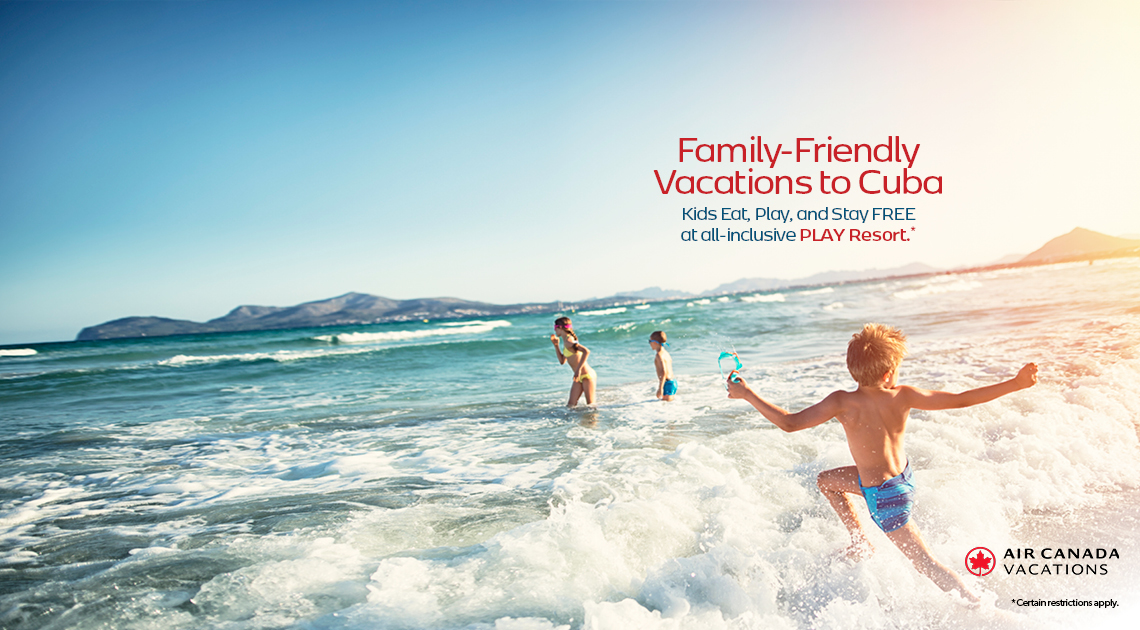 The “Kids Eat, Play & Stay free in Cuba ” promotion is valid on new individual bookings to Cayo Coco and Varadero Subject to availability at time of booking and to subject to change without notice. Not combinable with groups or any other offers. Offer may be withdrawn at any time.