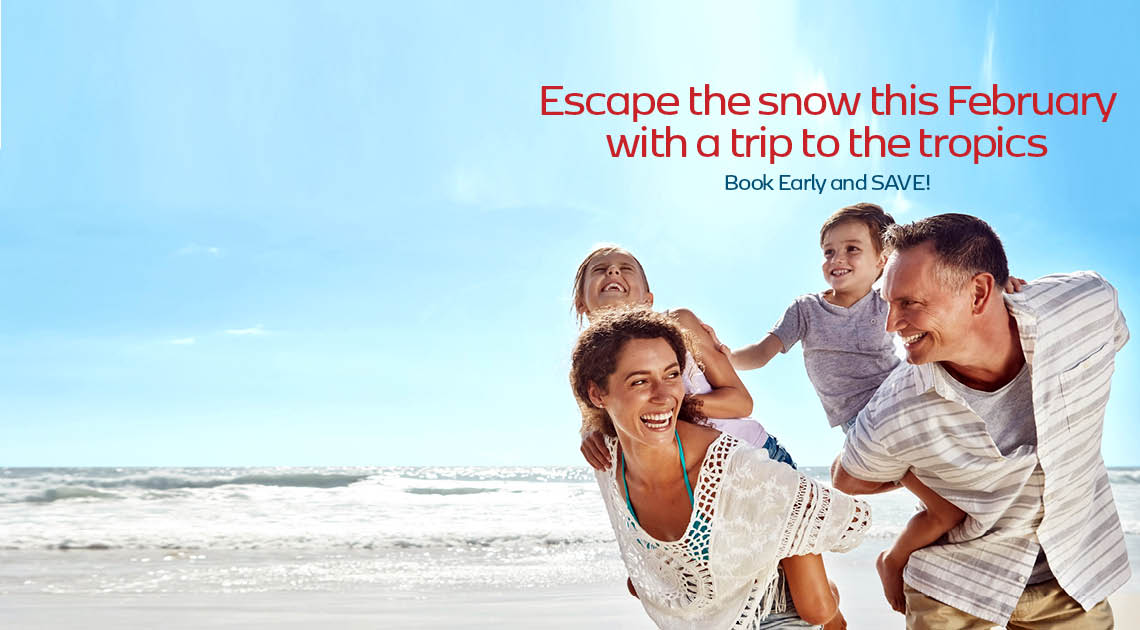 February Vacation Packages, Cheap Winter Vacations from Canada to The Caribbean, Cuba, Mexico & The Dominican Republic. Find the latest and lowest priced vacations in Florida, Caribbean Island vacation packages, South America and Central America Vacation deals this February.